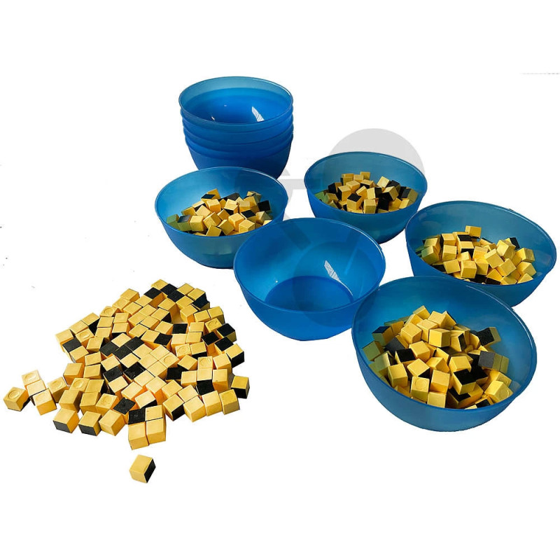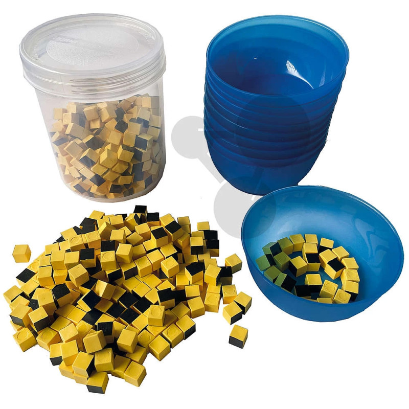 Sada pro modelování radioaktivního rozpadu ve třídě umožňuje názorně demonstrovat principy stochastických procesů ve fyzice. Díky většímu množství kostek je ideální pro skupinovou výuku a práci více studentů současně.