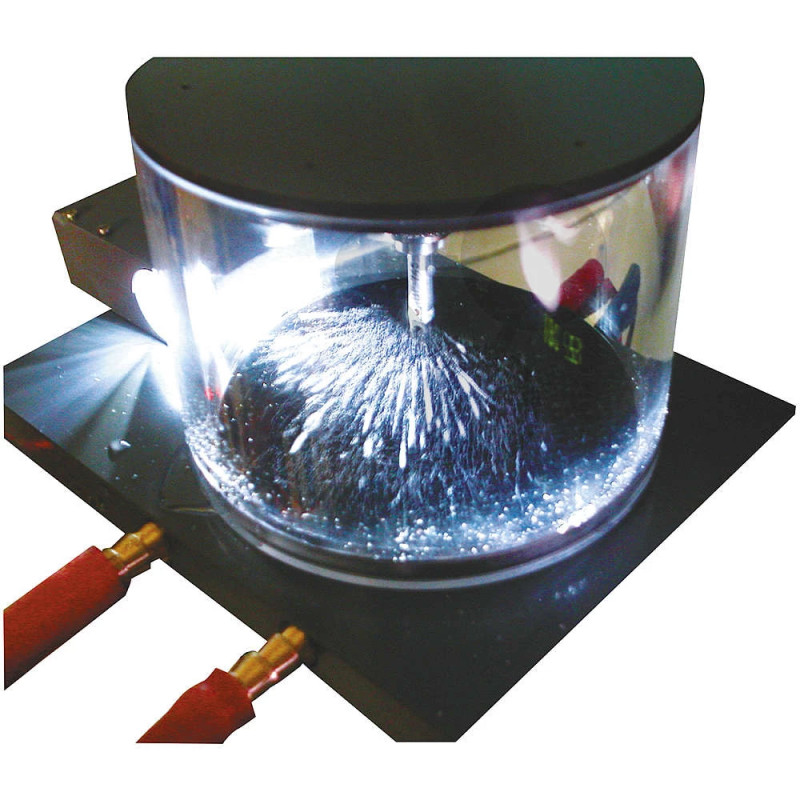 Integrované LED osvětlení zajišťuje výrazný kontrast a jasné zobrazení drah částic bez nutnosti externího světelného zdroje. Komora pracuje samostatně po dobu přibližně jedné hodiny, což je ideální pro demonstrační výuku.