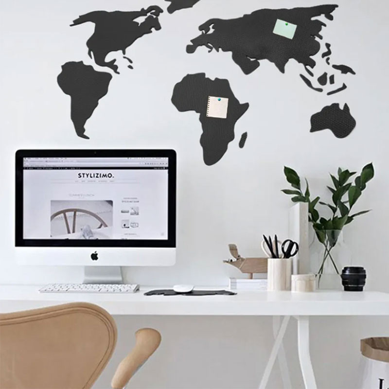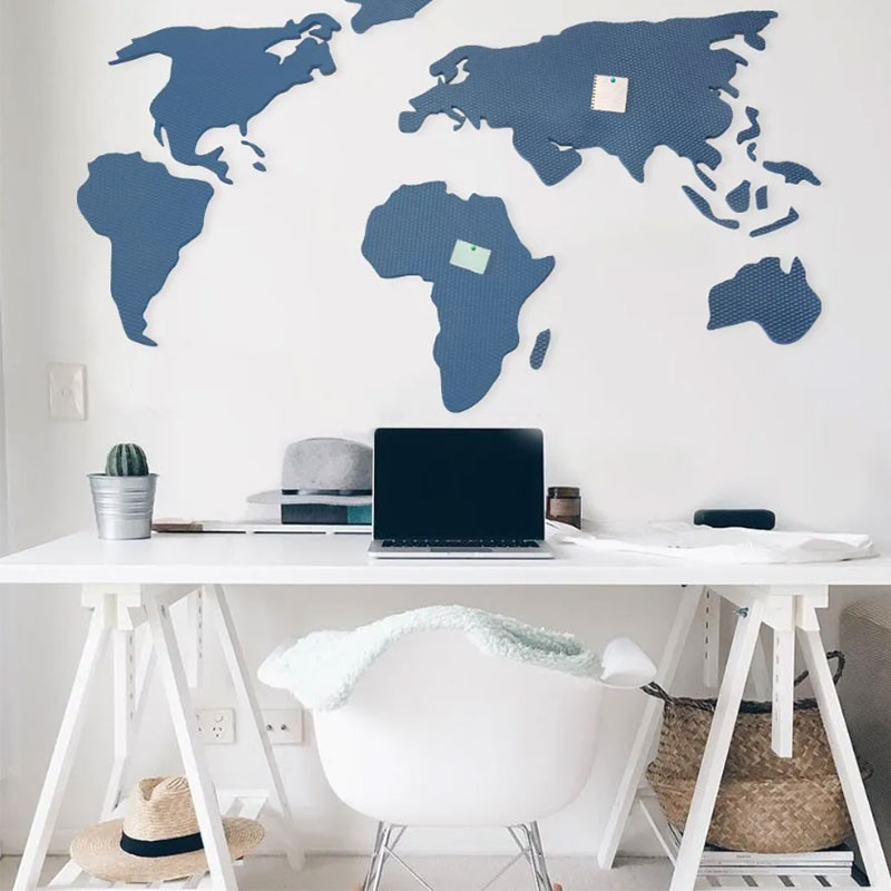 Pěnová nástěnka mapy světa nabízí snadnou instalaci a možnost personalizace pomocí sady špendlíků s vlaječkou.