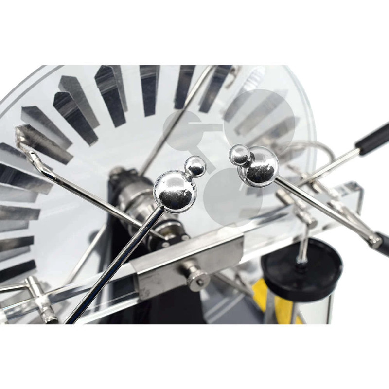 Zařízení je vybaveno ruční klikou s řemenovým pohonem a izolačními disky z plexiskla. Díky výraznému vizuálnímu efektu je ideální pro názornou demonstraci elektrostatických jevů ve výuce.