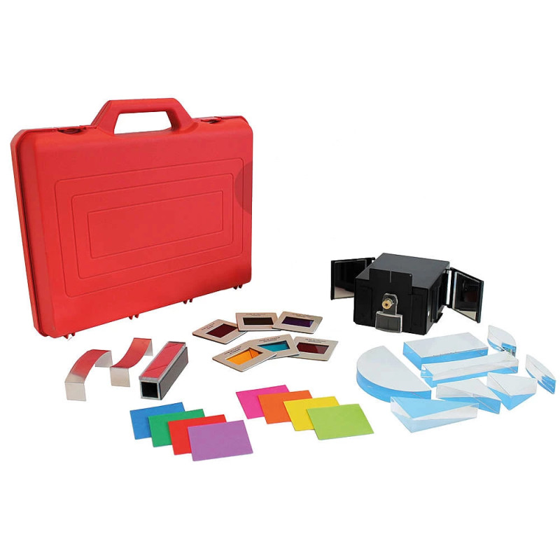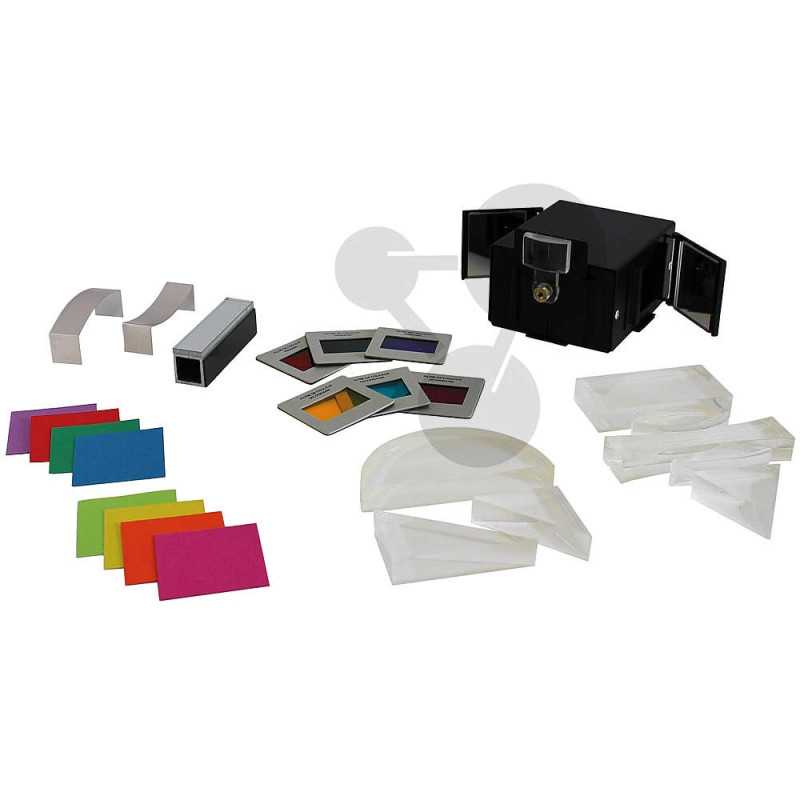 Pomocí LED zdroje světla se zrcátky a optických prvků lze demonstrovat lom a odraz světla, průchod paprsku různými prostředími i skládání barev. Magnetické uchycení zajišťuje jednoduchou manipulaci a přehledné uspořádání pokusů.