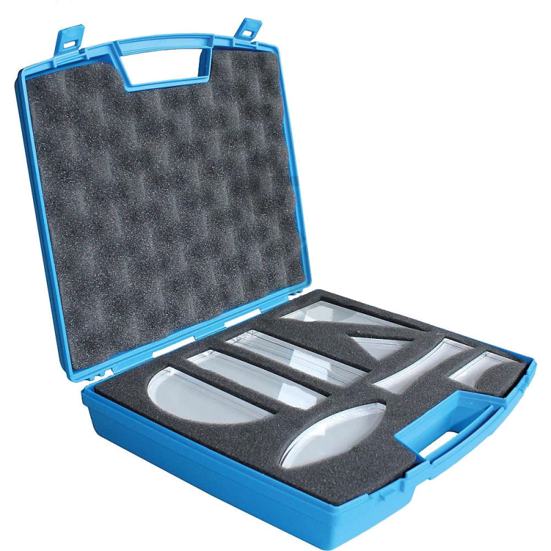 Kufřík Geometrická optika je kompaktní sada optických prvků určená pro demonstrační i praktickou výuku. Obsahuje základní komponenty pro studium lomu světla a vlastností optických materiálů.