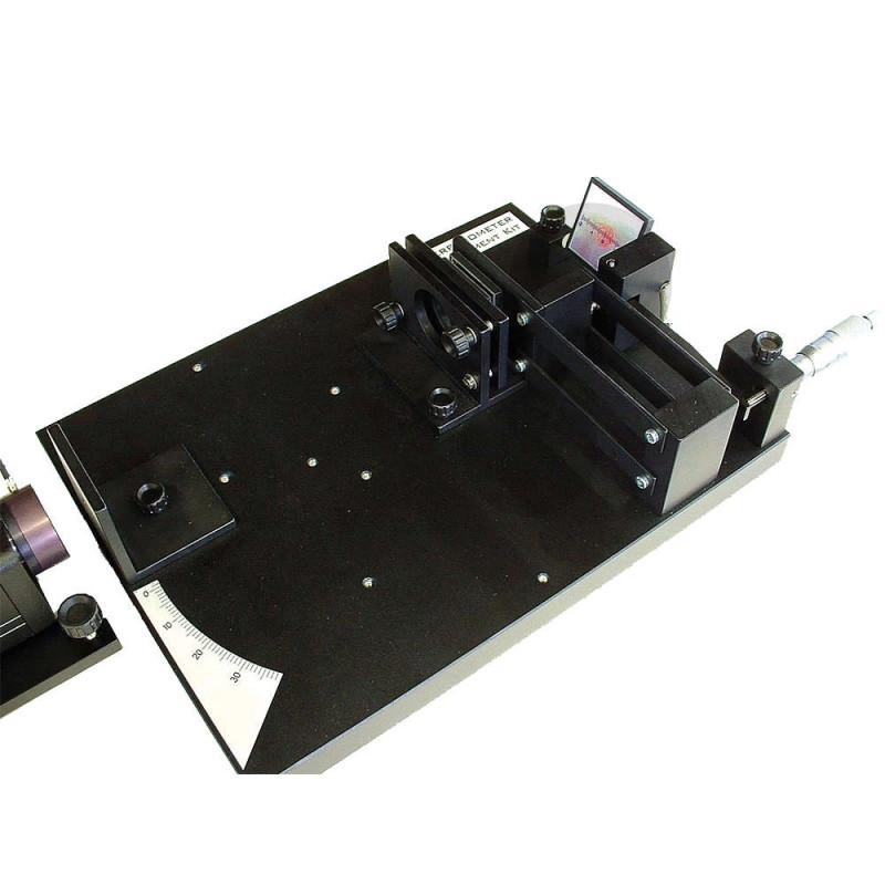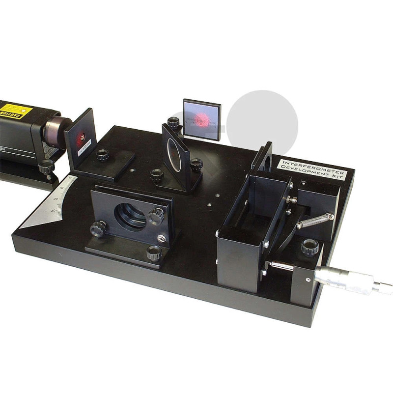 Michelsonův interferometr pro studium interference světla a přesná optická měření. Umožňuje sestavení více typů interferometrů pro různé experimenty.