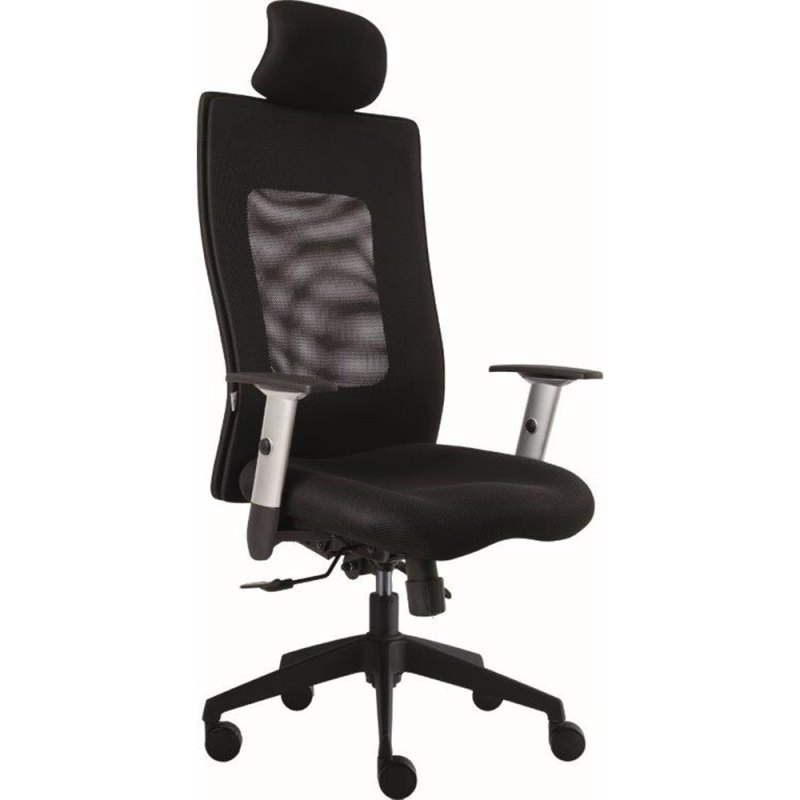 Kancelářská židle LEXON s prodyšným síťovaným opěrákem, synchronní mechanikou a výškově nastavitelnými područkami je vhodná pro kabinetní prostory, ředitelny a sborovny.