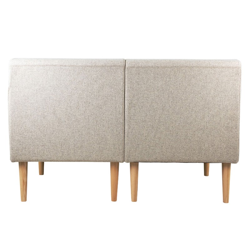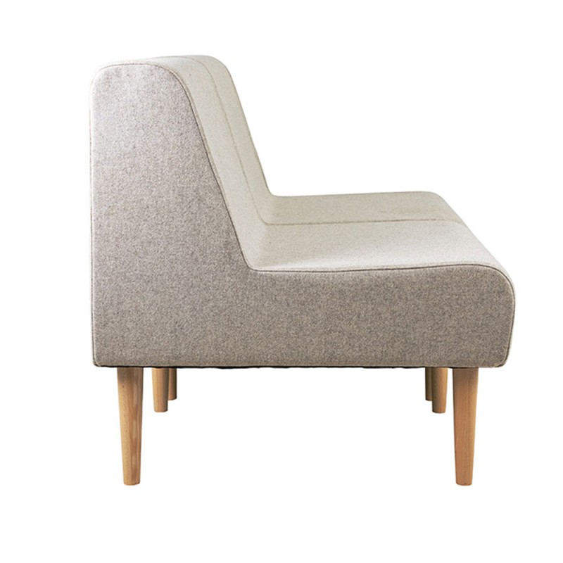 Vnitřní dřevěná konstrukce je vyplněna expandovanou polyuretanovou pěnou o výšce 45 mm, která zajišťuje pohodlné sezení a dlouhou životnost. K dispozici jsou dvě varianty podnože: kónické lakované nohy v přírodním bukovém provedení pro teplejší vzhled, nebo černá matná ocelová konstrukce z profilu 25 × 25 mm pro minimalistický a industriální charakter.