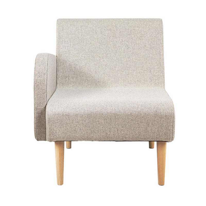 Díky robustní vnitřní dřevěné konstrukci a výplni z 45 mm silné expandované polyuretanové pěny poskytuje křeslo dlouhodobé pohodlí i při častém používání. Područka umístěná na pravé straně umožňuje připojení dalších modulů a tvorbu variabilních sezení dle dispozice prostoru. Na výběr jsou dvě varianty podnoží – kónické bukové nohy v přírodní barvě s lakem pro teplejší výraz, nebo matná černá ocelová konstrukce z profilu 25 × 25 mm pro minimalistický, moderní vzhled.