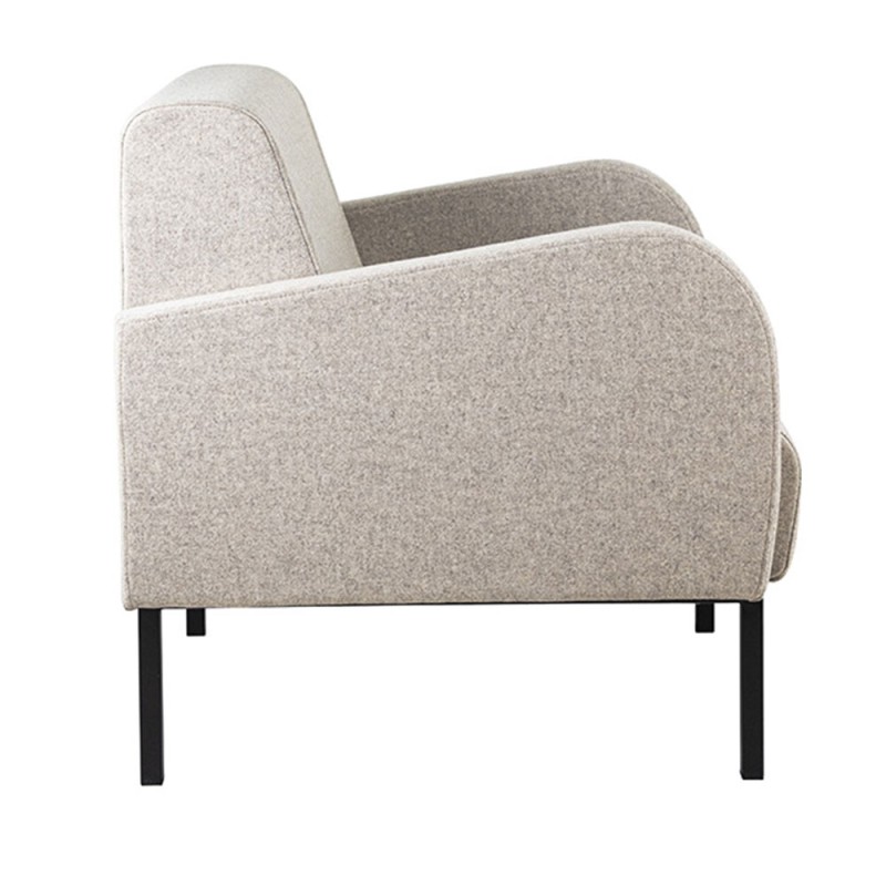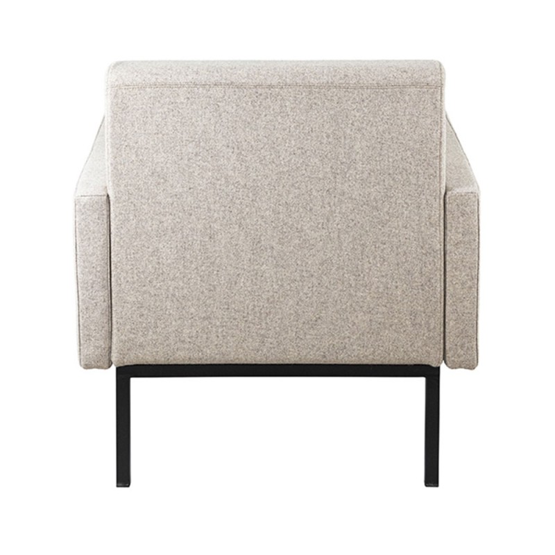 Základ křesla tvoří pevná dřevěná konstrukce s výplní z 45 mm silné expandované polyuretanové pěny, která zajišťuje pohodlné a stabilní sezení i při dlouhodobém používání. Součástí konstrukce jsou obě područky, které zvyšují celkový komfort a zároveň působí kompaktně. Na výběr jsou dvě varianty podnože: lakované kónické nohy z přírodního buku pro hřejivý přírodní vzhled, nebo černá matná ocelová konstrukce (profil 25 × 25 mm) pro moderní a minimalistické prostředí.