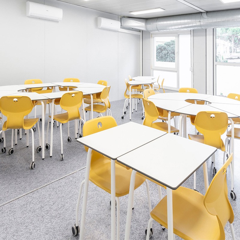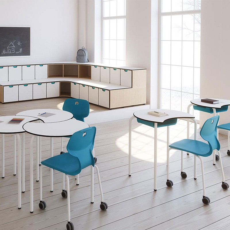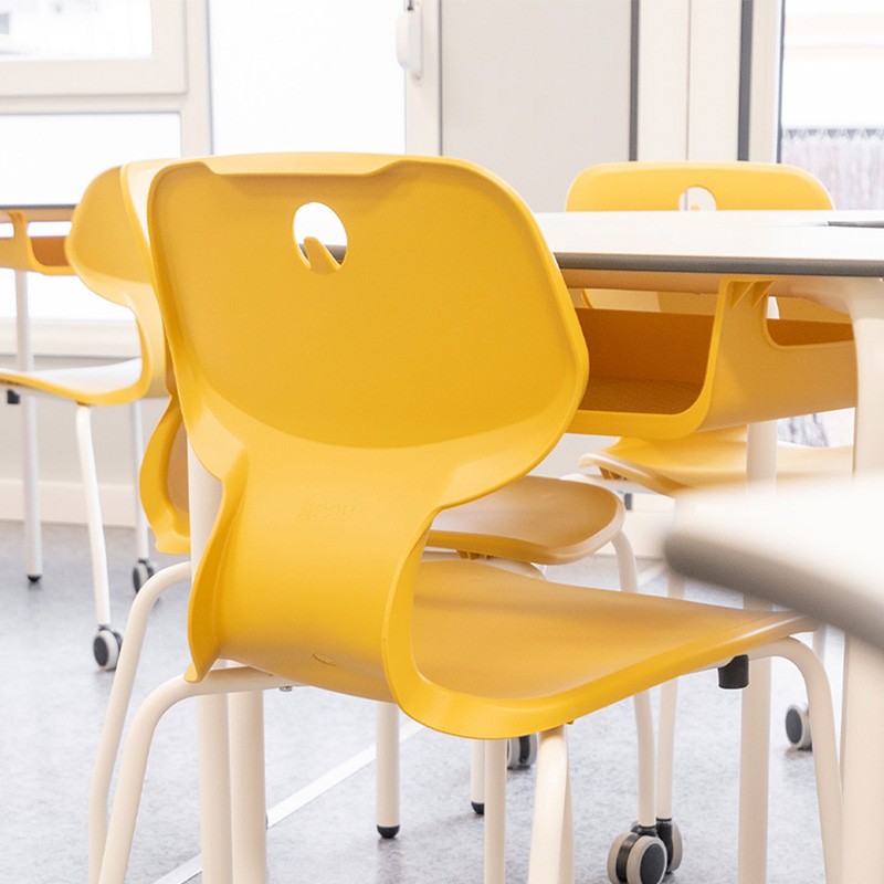 Perfektní ergonomie sedáku židle Soft R studenty přirozeně vede k dodržování zásad zdravého sezení. Ve spojení s lavicemi ze série PLUS vytváří perfektní vzdělávací prostory budoucnosti, kde je kladen důraz na svobodu, diskuzi a propojení oborů.