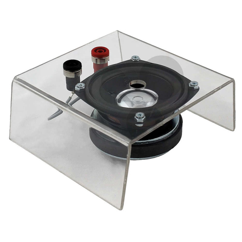 Reproduktor s průhledným krytem pro názornou demonstraci akustických jevů. Umožňuje sledovat konstrukci i šíření zvuku při experimentech.