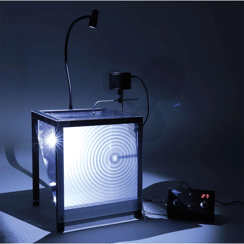 Kompaktní vlnová nádrž s LED stroboskopem je moderní didaktická pomůcka určená pro demonstraci vlnových jevů. Umožňuje názorně zobrazit šíření vln, jejich odraz, lom, interferenci i difrakci. Zařízení je vybaveno výkonným 3 W LED stroboskopem, který zajišťuje jasné a kontrastní zobrazení vlnění na projekční ploše. Frekvenci a amplitudu lze plynule regulovat, přičemž aktuální hodnota je zobrazena na digitálním displeji.
