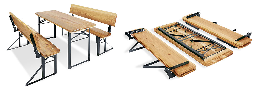 Tato tradiční dětská zahradní sestava je nejen skvělým místem k posezení, ale také praktickým doplňkem každé zahradní party. Sestava se skládá z jednoho stolu a dvou lavic. S jednoduchým sklápěním se jednoduše uklidí nebo naopak rozestaví. Ať už jde o neplánovanou svačinu na zahradě nebo posezení na pikniku, tato venkovní sestava je vždy připraven k použití a poskytuje dětem pohodlné a stabilní místo k sezení.