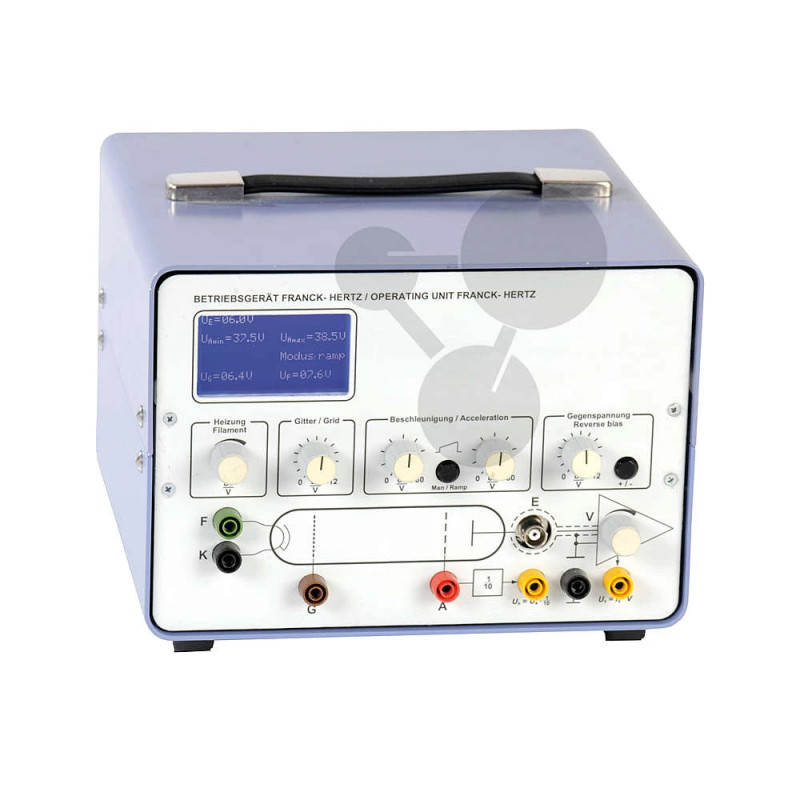 Zdroj pro Franck-Hertzův pokus je určen pro napájení experimentů s Franck-Hertzovými trubicemi plněnými rtutí i neonem. Přístroj poskytuje všechna potřebná napětí pro realizaci pokusu a umožňuje přesné sledování průběhu voltampérové charakteristiky.