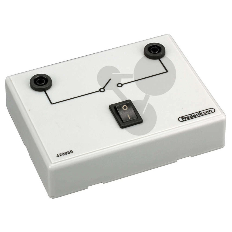 Vypínač v držáku je základní komponenta pro sestavování a ovládání elektrických obvodů ve výuce fyziky. Slouží k jednoduchému přerušení nebo uzavření elektrického proudu.