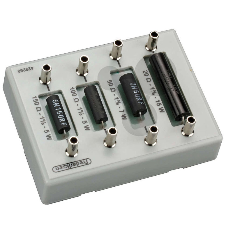 Pomocí jednotlivých odporů (20, 50, 100 a 150 Ω) lze demonstrovat vliv odporu na proud a napětí v obvodu. Pomůcka je vhodná pro experimenty zaměřené na základní zákonitosti elektrických obvodů.