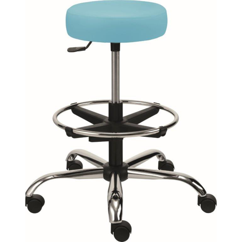 Stolička NORIS čalouněná spojuje komfort, variabilitu a odolnost. Sedák s bohatým čalouněním o průměru 32 cm nabízí příjemné a pohodlné sezení i při delším používání. Díky mechanice piastr lze snadno nastavit výšku sedu pomocí páčky. Otočný sedák (360°) umožňuje volný pohyb při práci. Stabilitu zajišťuje odolný židlový kříž, který může být osazen kluzáky nebo kolečky.